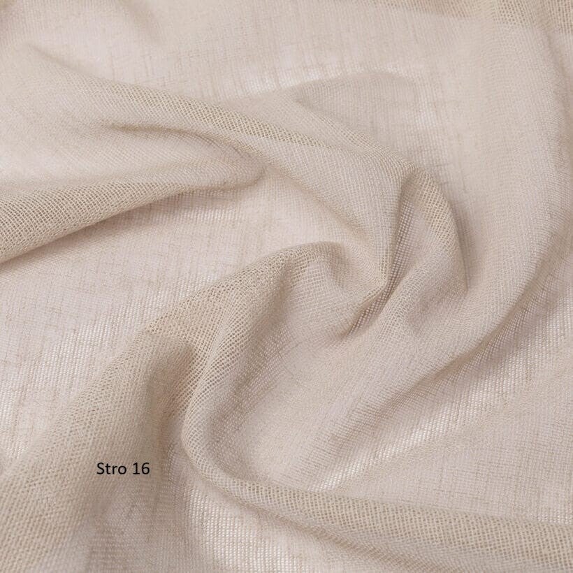 Deze kamerhoge linnenlook inbetween heeft een matte uitstraling, waardoor deze zich uitstekend leent voor een inrichting met landelijke of industriële uitstraling. De grove weving geeft een extra natuurlijke look. Deze transparante stof is makkelijk in onderhoud. Tevens is deze stof deels gemaakt van gerecyclede garens. De Birgit is verkrijgbaar in negen mooie pastelkleuren. Ook is deze als 320cm hoog verkrijgbaar, en dus zeer geschikt voor hogere ruimtes. De onderzijde van de stof is voorzien van een verzwaringskoord waardoor er geen zoom in hoeft en de stof prachtig valt. Deze stof is Oeko-tex gecertificeerd.