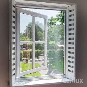 De onzichtbare RVS stift in de geleiders zorgt ervoor dat het gaas altijd netjes in de geleiders gespannen blijft, waardoor uitwaaien van het gaas niet mogelijk is. De Super+ is eenvoudig te bedienen en is uitgevoerd met een schuifvergrendeling.