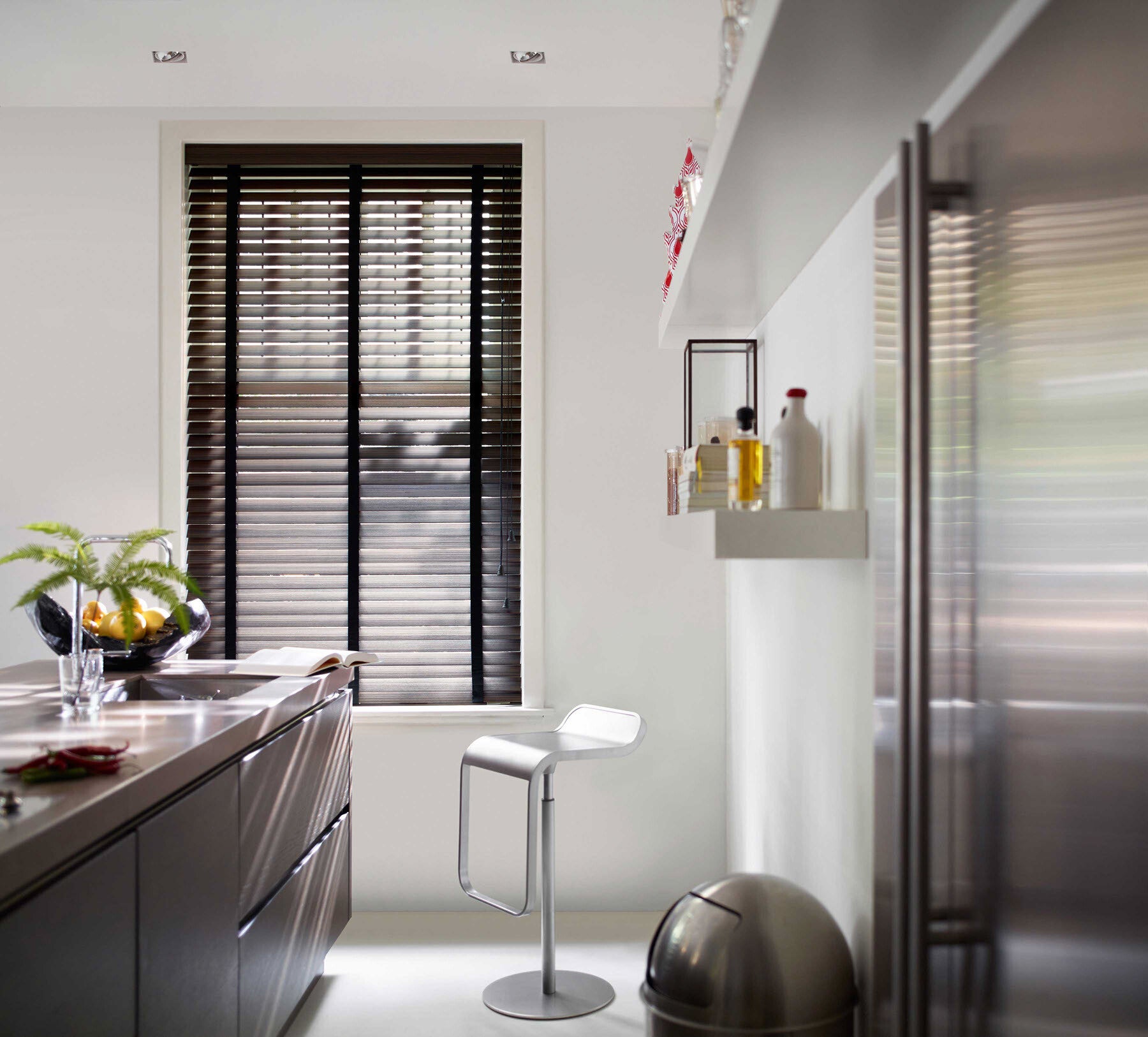Houten jaloezieën hebben de functionaliteit van horizontale jaloezieën, zoals een perfecte lichtregeling, maar onderscheiden zich door hun rustige, warme uitstraling.