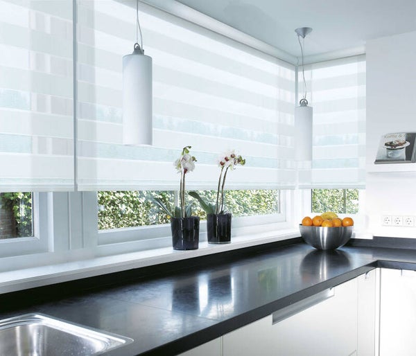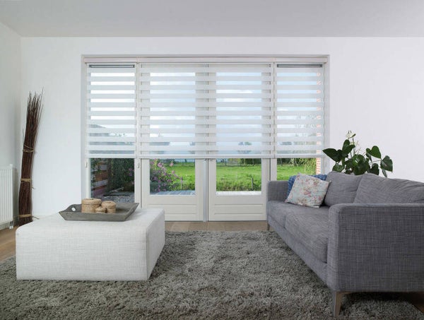 Het Duo Rolgordijn is een product met 2 lagen stof, bestaande uit transparante en niet transparante banen.